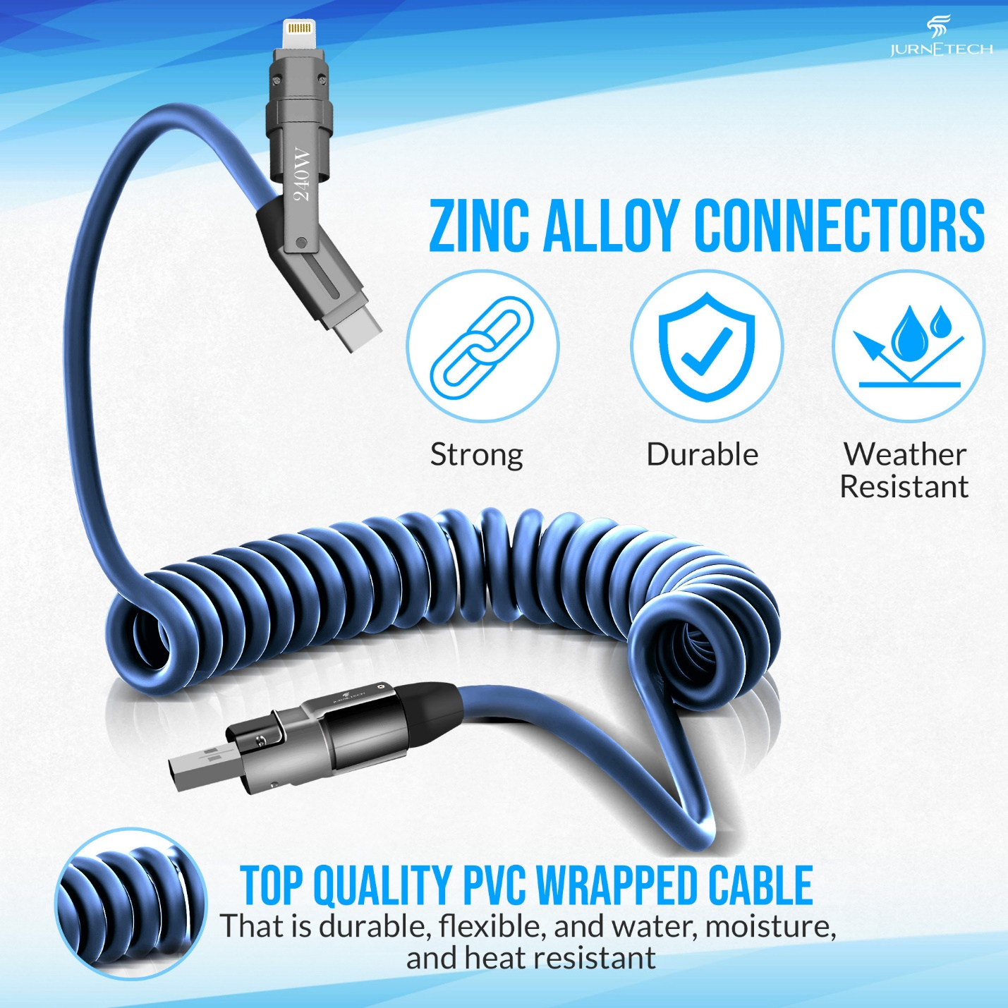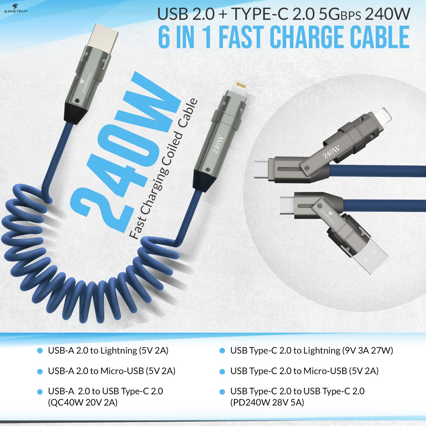 · This powerful, tangle-free JURNETECH 6-in-1 Coiled Charging Cable is engineered to support fast charging and data transfer, ensuring you stay connected and productive wherever life takes you. Experience the difference a truly universal and powerful charging cable can make. Order yours today and simplify your life!